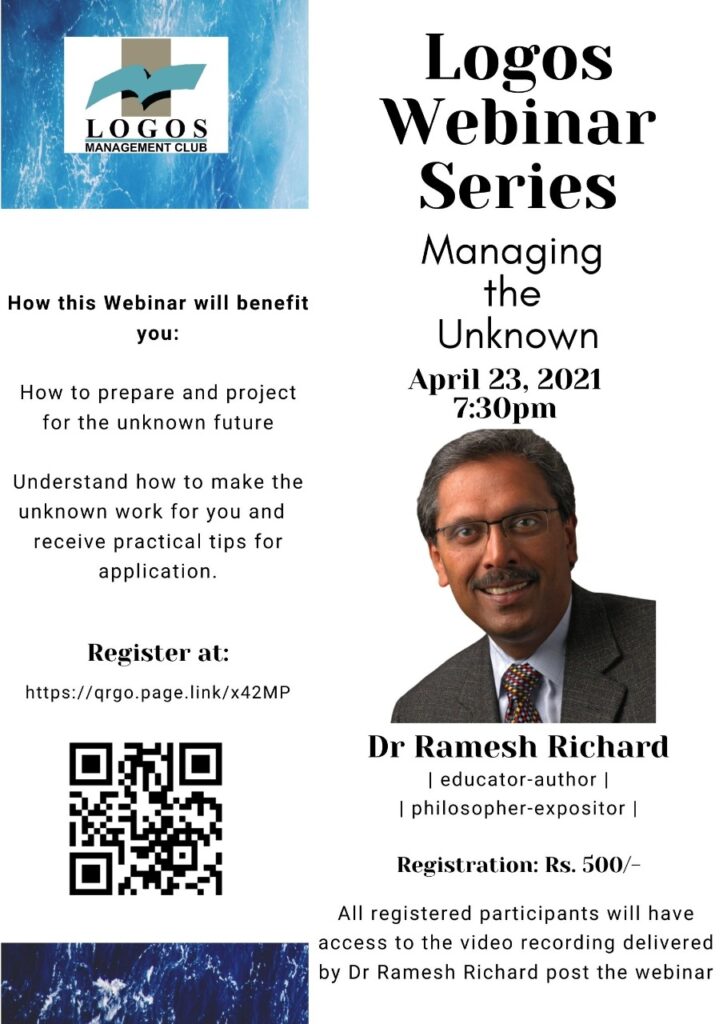 Managing the unknown by Dr.Ramesh Richard held on 3rd April 2021